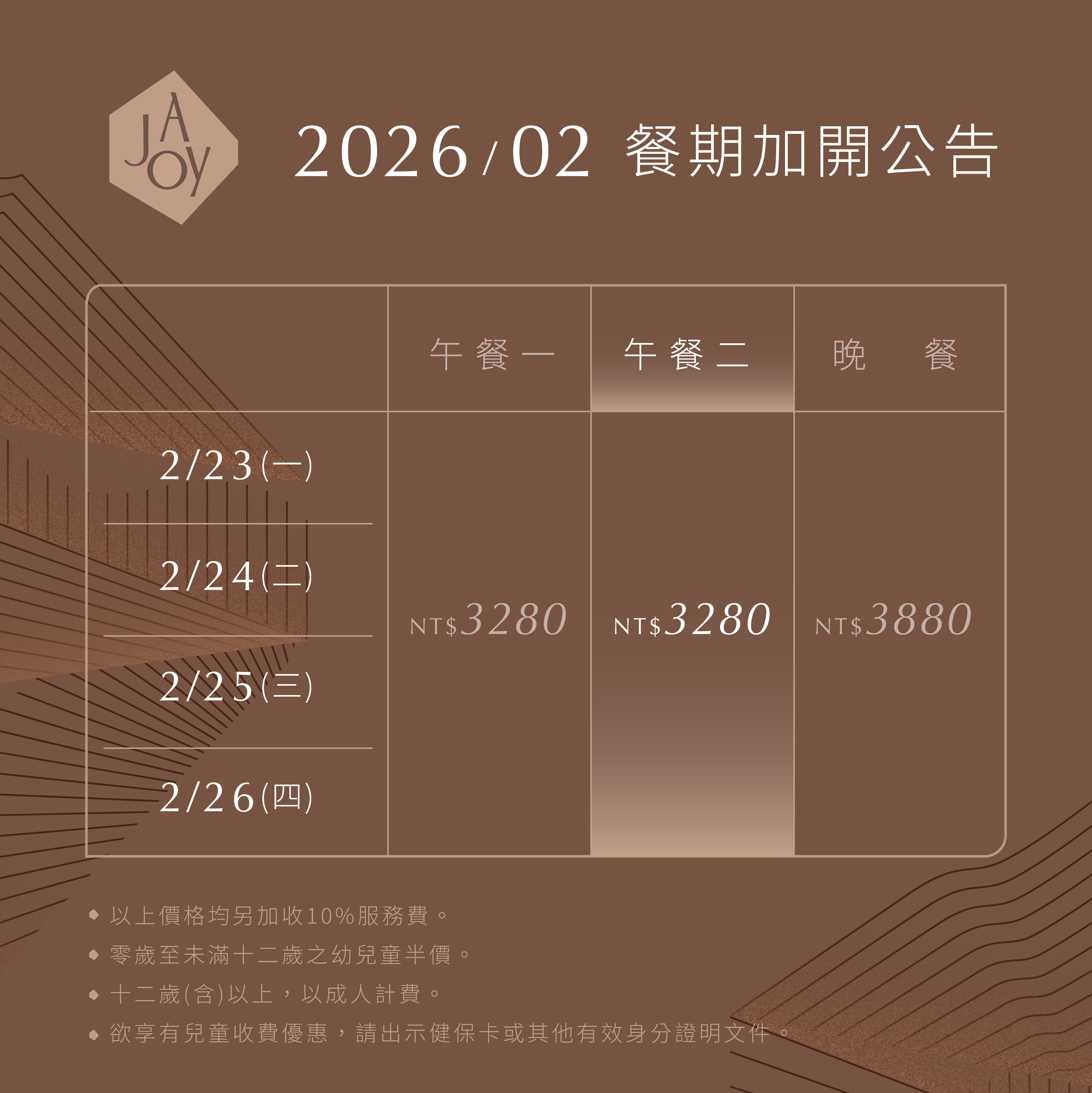 【2026年2月 餐期加開公告】