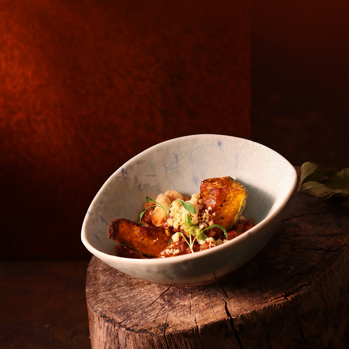 金黃栗子南瓜以低溫烘烤緊鎖甘甜,搭配濃郁墨西哥和牛辣醬與帶著辛香的酪梨醬,再撒上帕瑪森酥菠蘿。每一口都是秋季的溫暖能量,豐厚卻不失雅緻。