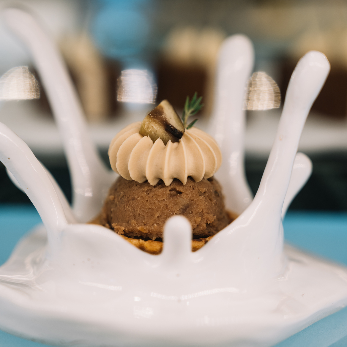 小泡芙中蘊藏紅茶卡士達與蜜桔芬芳,橙花香緹輕柔覆蓋,佐以香橙肉桂凍與脆口開心果。酸甜明快、馥郁層疊,如夢般的甜美幻境。