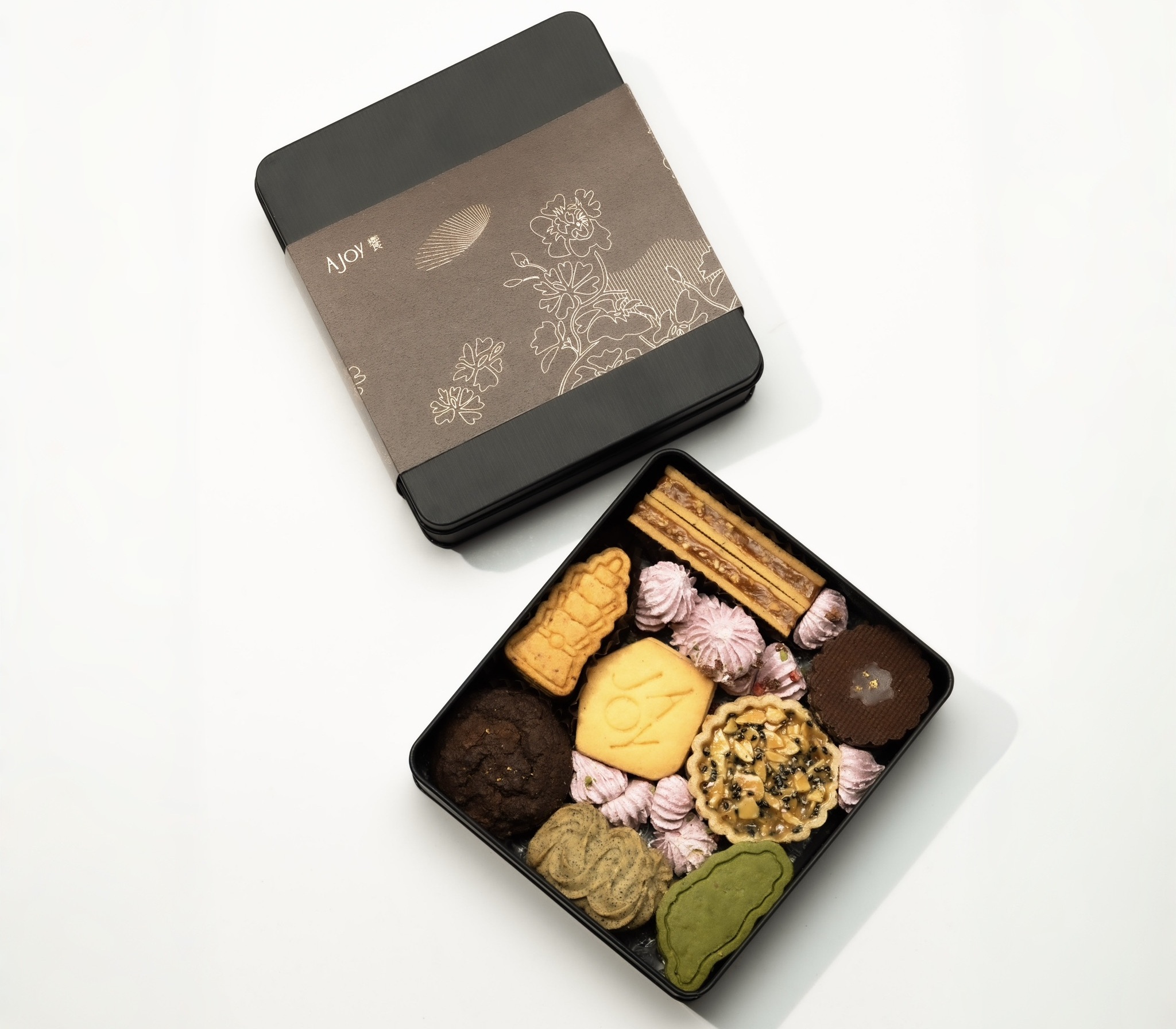 從藝術到味覺,延續創作語彙中「祝福」的精神,讓歲末的每一次相聚都成為一場味覺與感官的慶典。饗 A Joy 以「風土、形象與情感的延續」為題,將台灣在地食材、建築語彙與節慶氛圍融入餅乾設計,讓一盒餅乾成為島嶼文化的縮影——從視覺造型到味覺層次,都承載著祝福與記憶。