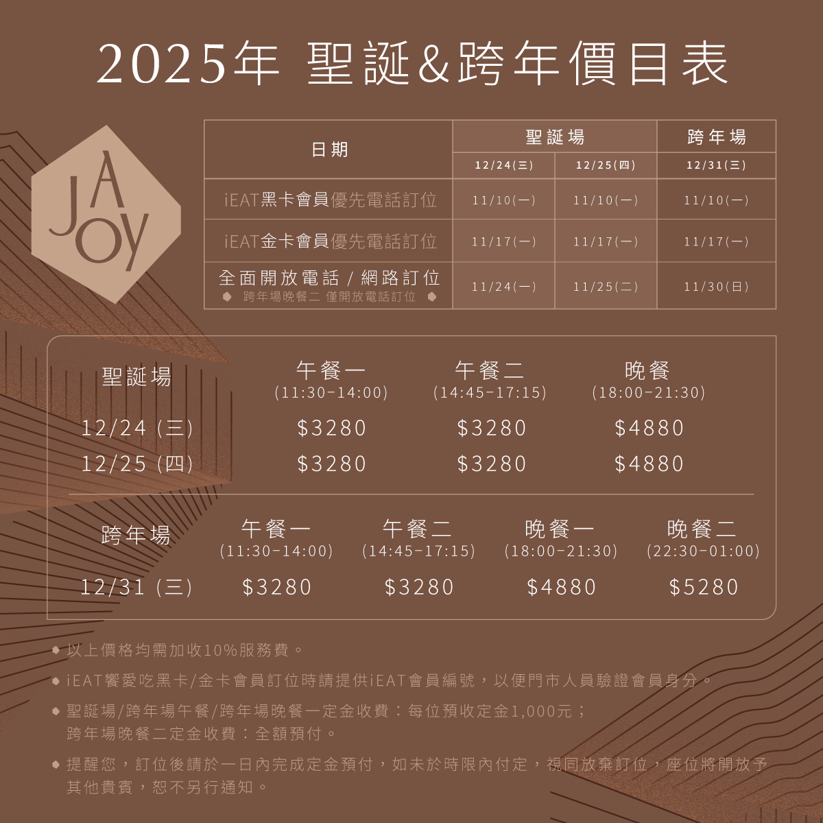 ☆ 聖誕場/跨年場午餐/跨年場晚餐一 定金收費:每位預收定金1,000元。
